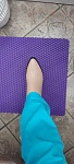 Чтобы измерить длину ступни, необходимо встать на ровную поверхность, слегка касаясь пяткой находящейся сзади перпендикулярной ровной поверхности, например, стены без плинтуса.